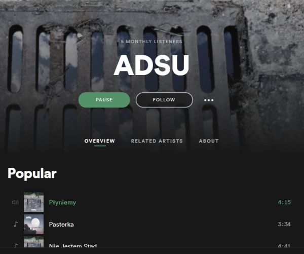 Fanów mobilnej muzyki zapraszamy do słuchania naszej muzyki w aplikacji Spotify. Znajdziesz nas szukając "adsu". Bezpośredni link: Grupa ADSU na Spotify